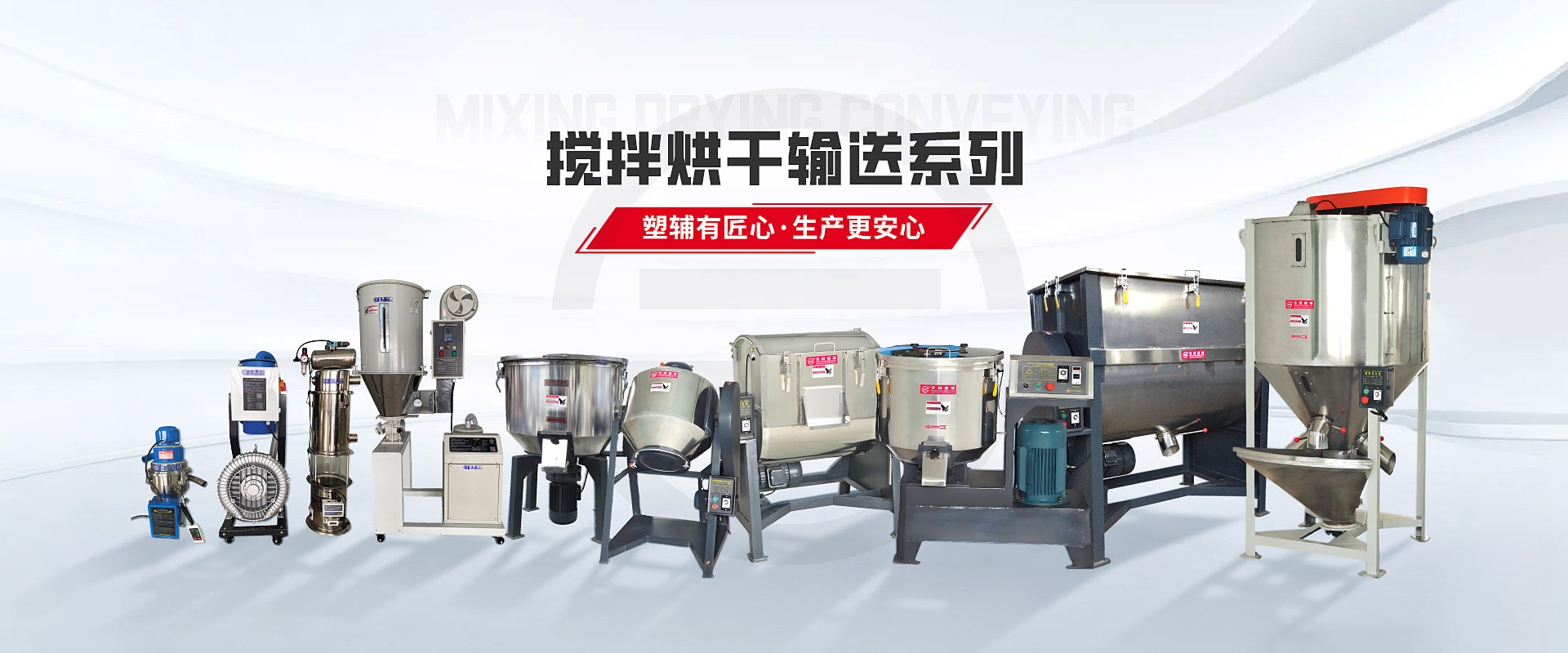 塑料干燥機與混合干燥機在功能、結構及應用場景上差異顯著。塑料干燥機以單一干燥為核心,專注于去除塑料物料中的水分,像熱風干燥機通過熱風循環穿透 PP、PE 等粒料帶走水分,除濕干燥機則借助分子篩等系統處理 PA、PC 等吸濕性強的工程塑料,確保物料干燥度滿足注塑、擠出等加工要求,但其過程中物料基本不混合。混合干燥機則集混合與干燥于一體,在均勻攪拌多種物料的同時完成脫水。例如螺帶式混合干燥機通過 U 型槽內的螺帶推動物料上下翻動,夾套加熱配合抽風排濕,適合色母粒與主料、碳酸鈣等助劑的同步處理;犁刀式機型則以高速攪拌破碎結塊物料,混合均勻度可達 95% 以上,特別適用于改性塑料配方調試等需要多組分均勻混合的場景。從結構看,塑料干燥機多為料斗搭配加熱、送風系統,物料靜止或簡單翻動,如真空干燥機通過負壓降低水分沸點,適合熱敏性塑料;混合干燥機則必須配備攪拌裝置,如雙錐回轉干燥機依靠筒體旋轉使物料翻滾,同時通過筒壁加熱和真空系統實現雙重功能,其攪拌強度直接影響混合與干燥效率。性能上,塑料干燥機干燥時間通常 1 - 4 小時,能耗集中在加熱與送風,溫度控制精度 ±5℃;混合干燥機因需兼顧攪拌,干燥時間略長至 2 - 6 小時,但綜合工序效率更高,能耗隨攪拌功率增加,溫度控制需考慮物料剪切熱,精度達 ±3℃。選型時,若干燥與混合分步進行、物料單一,選塑料干燥機;若需同步處理多組分物料(如再生料與助劑混合),或追求設備集成化,混合干燥機更合適。維護上,前者側重加熱元件與風機,后者需關注攪拌軸密封、槳葉磨損及軸承潤滑,確保混合精度與設備壽命。